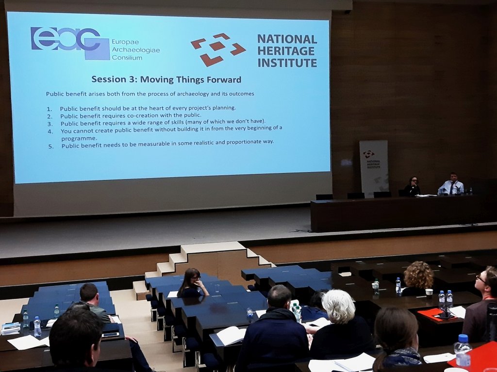 Začiatkom marca 2020 sa dvaja pracovníci odboru archeológie Pamiatkového úradu SR zúčastnili na výročnom stretnutí „Annual Meeting 2020“ Európskej archeologickej rady, ktoré tentokrát zorganizovali kolegovia z Národního památkového ústavu Praha. Stretnutia v novej budove Národného múzea v Prahe (v priestoroch bývalého Federálneho parlamentu) sa zúčastnilo približne 100 kolegov z rôznych európskych krajín. Európska archeologická rada (European Archaeological Council – EAC) je organizácia, ktorá sa zameriava na manažment ochrany archeologického dedičstva v Európe. Zároveň slúži ako platforma na spoluprácu a na výmenu informácií medzi inštitúciami uskutočňujúcimi ochranu archeologického dedičstva v členských krajinách Európy. Výročné stretnutia sú vždy zamerané na inú tému – témou tohoročného 21. sympózia (21st Heritage Management Symposium) bola „Archeológia a prínos pre verejnosť: posúvanie debaty vpred“ (Archaeology and Public Benefit: moving the debate forward).