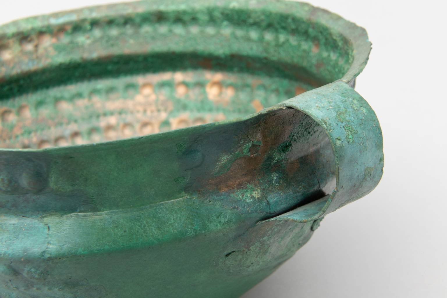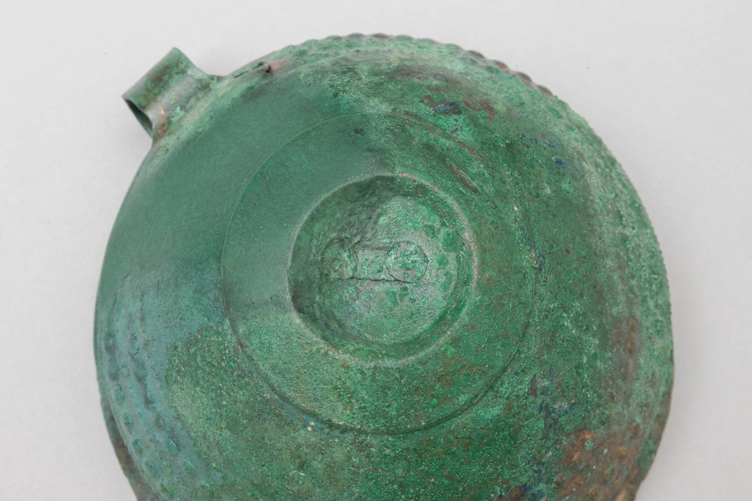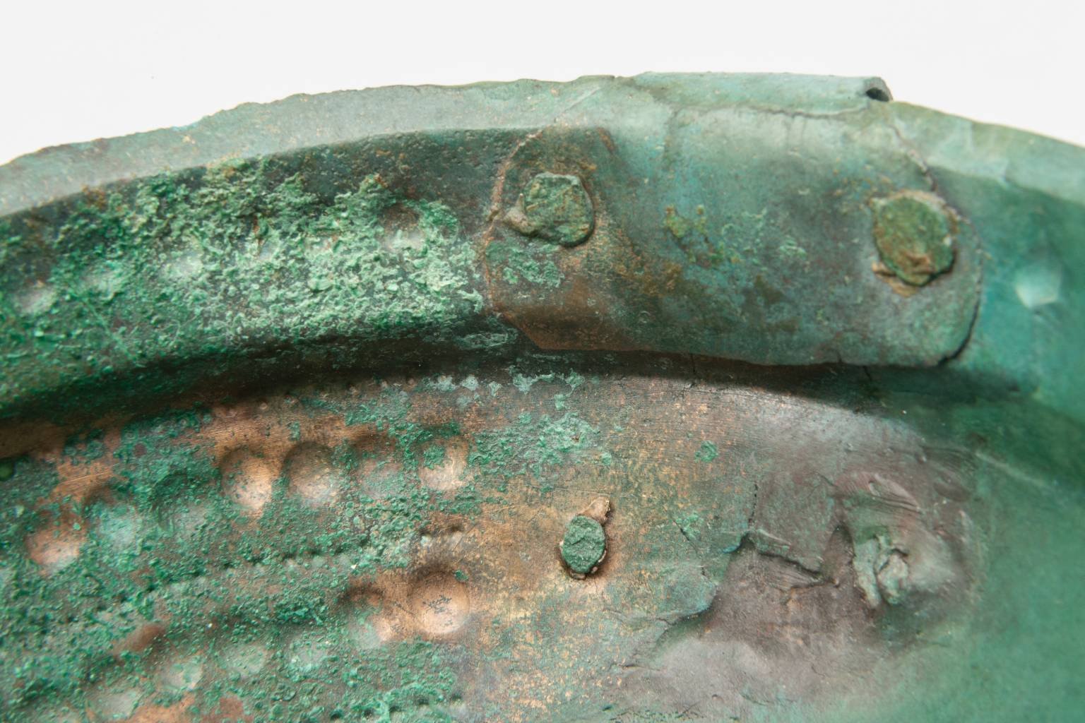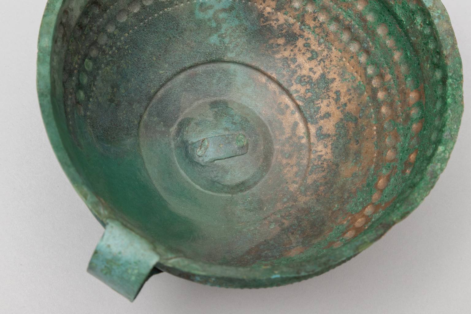 Zaujímavosťou je, že šálka bola už v praveku reparovaná – zrejme dierka na dne bola zakrytá kúskami bronzového pásika z oboch strán, ktoré boli pripevnené dvoma nitmi. To jednoznačne potvrdzuje, že išlo o cenný predmet, ktorý stálo za to opraviť.